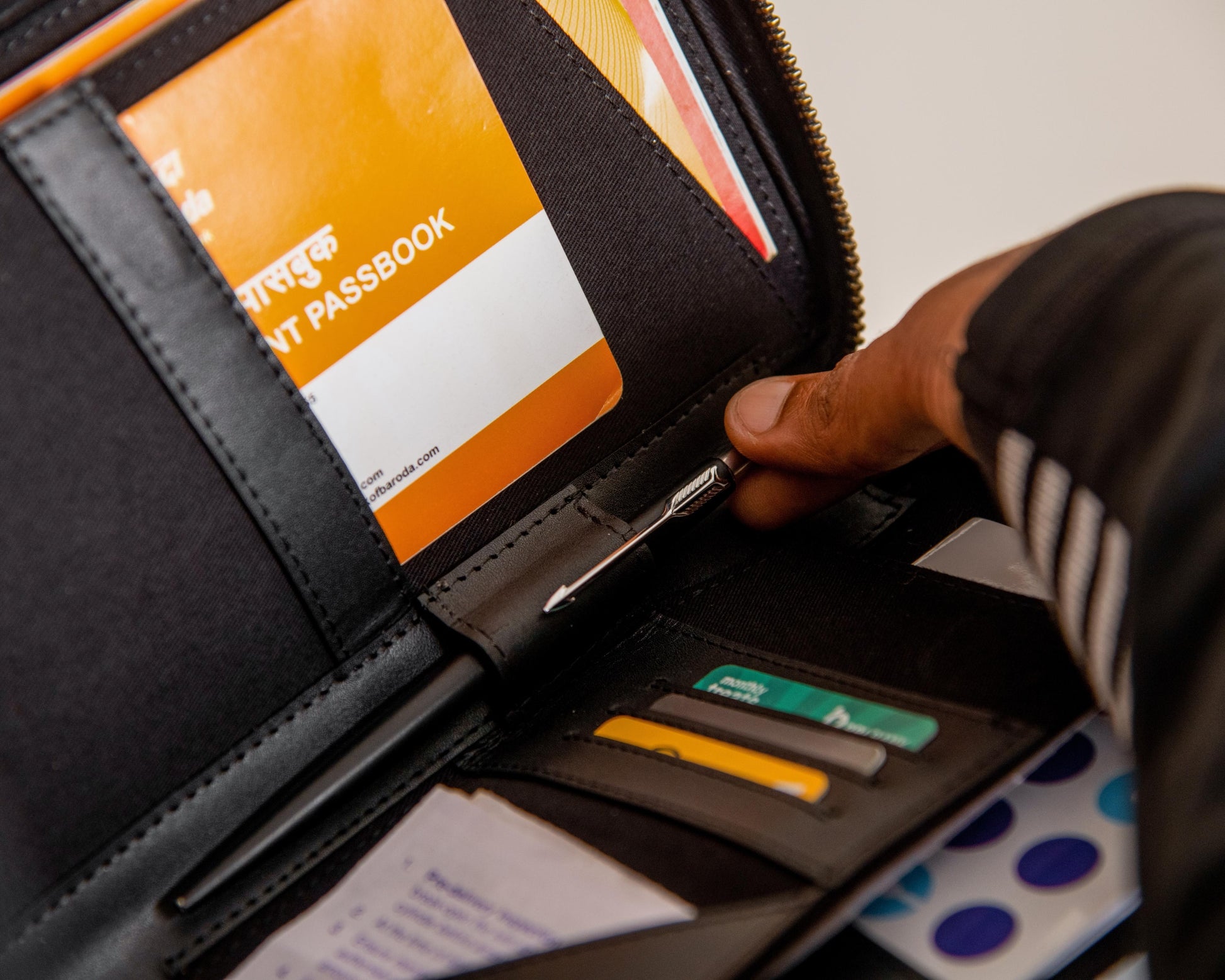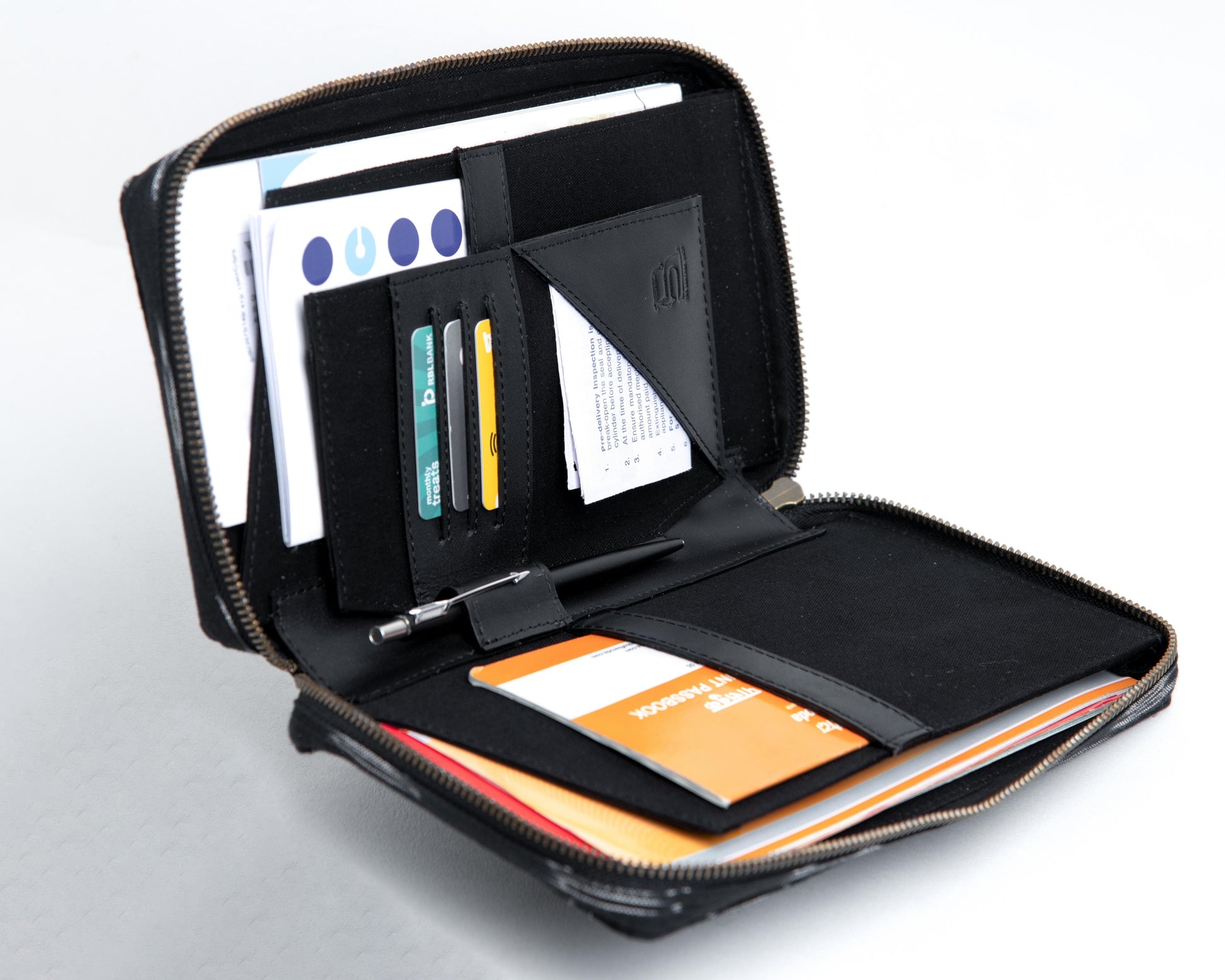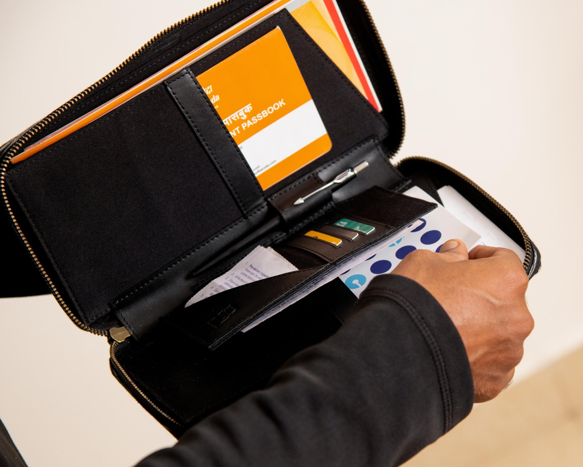 Bank Organiser is something where you keep all your bank related documents together. The organiser is made out of Genuine Leather and premium handwoven Black and White Ikat Supported by highly rich cotton Lining.