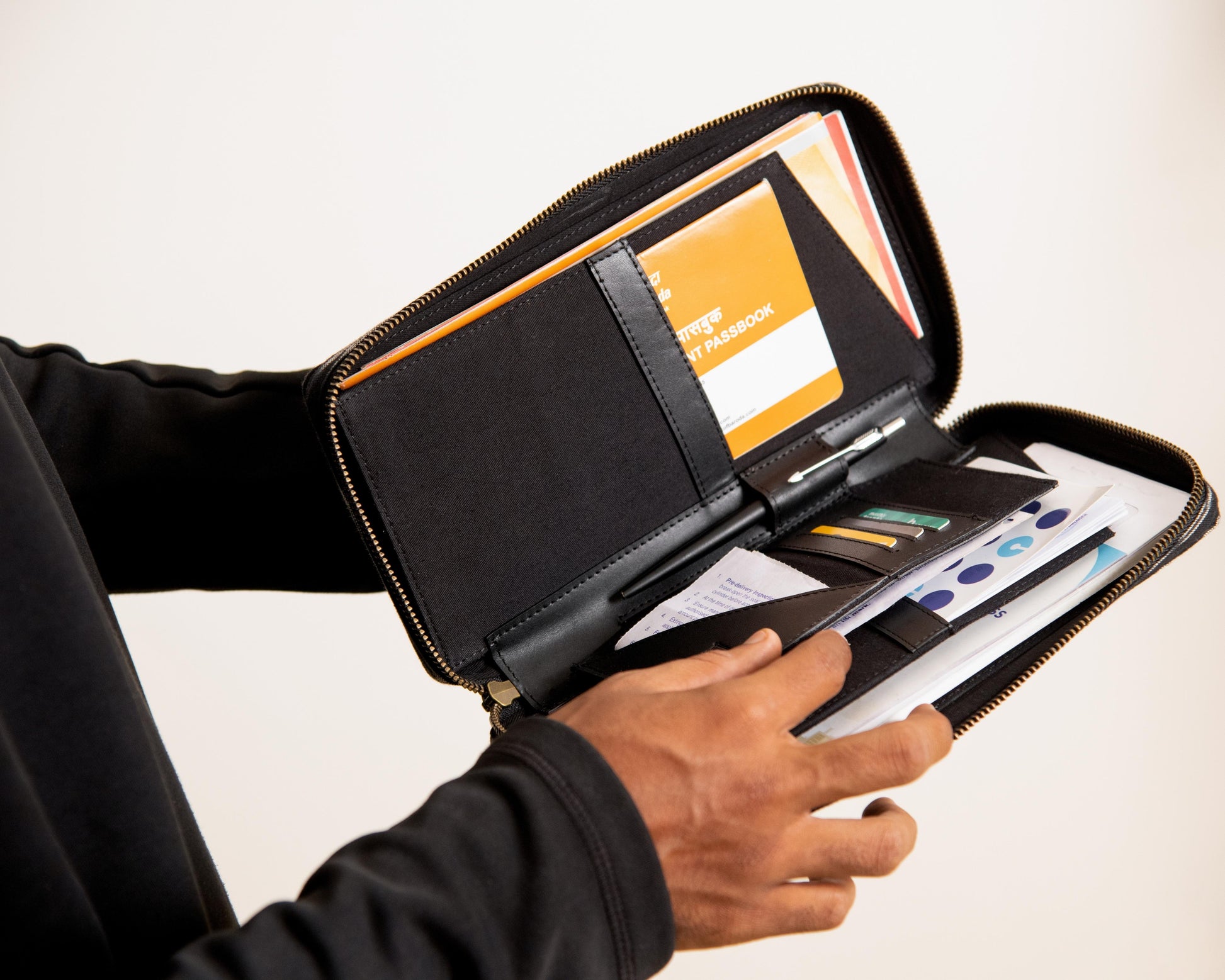 - 2 Cheque book compartments (can keep 2 books in one pocket)