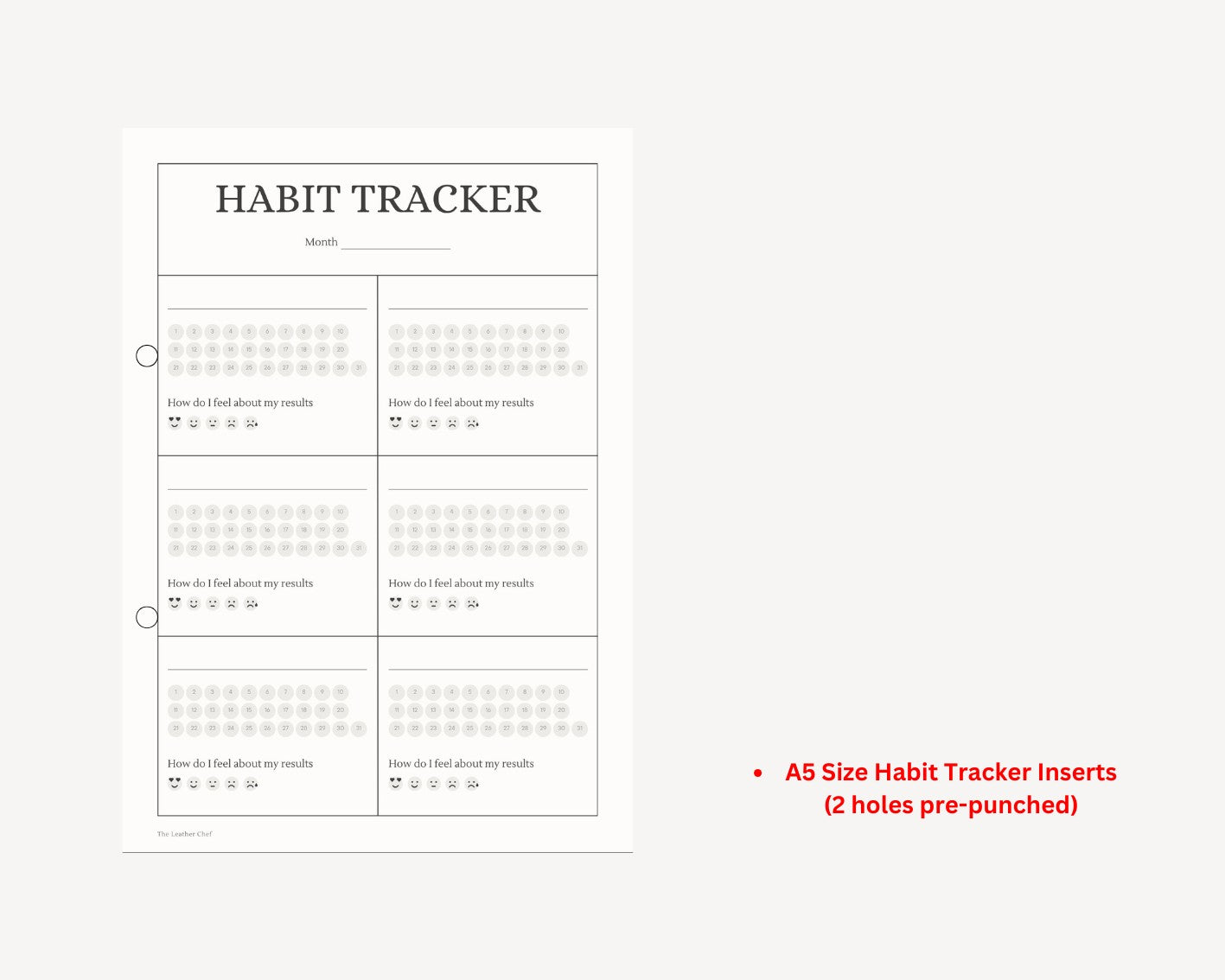 -Habit Tracker, - 3 Sheets (6 Pages) double sided sheets